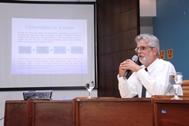 Antes de concluir sua breve apresentação com alguns dados sobre os pedidos de revalidação de diplomas do exterior, como a superação dos brasileiros em relação aos portugueses, entre 2013 e 2014, e a permanência da engenharia civil como a mais requisitada, José Geraldo Baracuhy dialogou com os colegas de academia, em torno, principalmente, da carga horária diferenciada, sobretudo de países europeus, e da forma como essa e outras discussões deverão ser conduzidas pelo Sistema Confea/Crea e Mútua, inclusive no seminário. "Ano passado, a Ceap deliberou 1.048 processos, cerca da metade era de registro de instituições e de cursos. Desde dezembro, não há mais a necessidade de o Crea enviar aquele monte de papel porque a homologação será feita pelo Crea, e o Federal ficará apenas com os recursos".