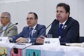 A participação do Confea no Seminário teve continuidade com uma mesa mediada pelo conselheiro federal Alessandro Machado e que contou novamente com a participação do gerente regional do Confea para o Centro-Oeste, eng. civ. Jary de Carvalho e Castro, e do assessor da presidência do Confea, eng. civ. José Gilberto Campos.
