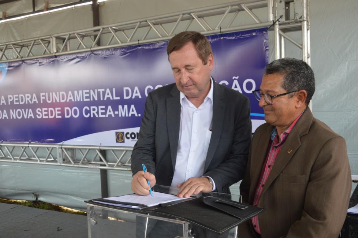 Antes do descerramento da placa, foi assinado o convênio de auxílio financeiro para construção da nova sede no valor de R$ 2,3 milhões de linha de crédito, recursos oriundos do Confea, além da contrapartida de R$ 1.812.690,13 do Crea-MA, totalizando R$ 4.112.690,13.