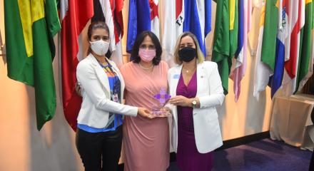Conselheira federal Michele Ramos representa o Confea em premiação, ao lado da secretária executiva Fabyola Resende