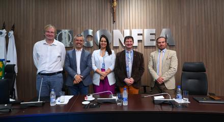 Comissão Eleitoral Federal reunida durante a votação online inédita do Confea