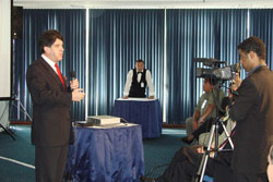 Em uma hora de apresentação, Amaral sugeriu dicas para entrevistas em estúdio, coletivas de imprensa, entre outras ocasiões que pressupõem contato com a mídia. Dentre os macetes, o jornalista falou sobre roupas e cores apropriadas e sobre a relação com a câmera. “Nem sempre um ótimo palestrante se dá bem com a câmera. A linguagem da televisão é outra. É preciso interagir com a câmera”, aconselha Amaral.