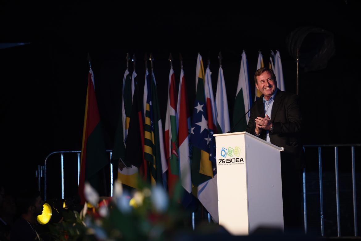 “Tenho certeza de que temos subsídio suficiente para apresentar um grande projeto, uma grande estratégia para o desenvolvimento do nosso país. A Engenharia, a Agronomia e as Geociências sempre estarão de pé a favor do Brasil. Parabéns à Engenharia brasileira”, afirmou o presidente do Confea, eng. civ. Joel Krüger, durante a solenidade. Realizada em Palmas (TO), a Semana Oficial reuniu, entre 16 e 19 de setembro, cerca de três mil profissionais, lideranças políticas, estudantes, pesquisadores e professores.