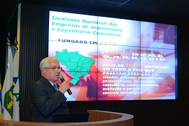 Em uma dos momentos mais substanciais do debate, o engenheiro Carlos Roberto Soares Mingione, Presidente do Sinaenco, fez uma apresentação sobre a importância e a responsabilidade das empresas de engenharia consultiva nas obras de infraestrutura e a contratação dos serviços de engenharia consultiva.