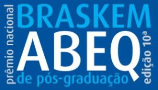 Profissionais das áreas de Química e das engenharias Química, de Materiais, de Alimentos e de Produção, interessados em participar do Prêmio Nacional de Pós-Graduação, devem inscrever seus projetos até 31 de março. A premiação, que está na décima edição, é promovida pela Associação Brasileira de Engenharia Química (ABEQ), com o patrocínio da Braskem S.A., e tem por objetivo apoiar o avanço da engenharia química nacional, através do incentivo à execução de trabalhos de pesquisa e desenvolvimento de alto nível e relevantes para o País.