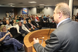 O presidente do CREA-SC falou da importância do projeto apresentado por Merísio às entidades de classe do Sistema Confea/Crea, visando participação democrática nas decisões que envolvem o conhecimento técnico dos profissionais da área tecnológica. “Muitas leis são elaboradas e aprovadas levando em conta apenas questões políticas. É fundamental a participação dos nossos profissionais nos projetos que evolvem conhecimento o técnico específico científico”.