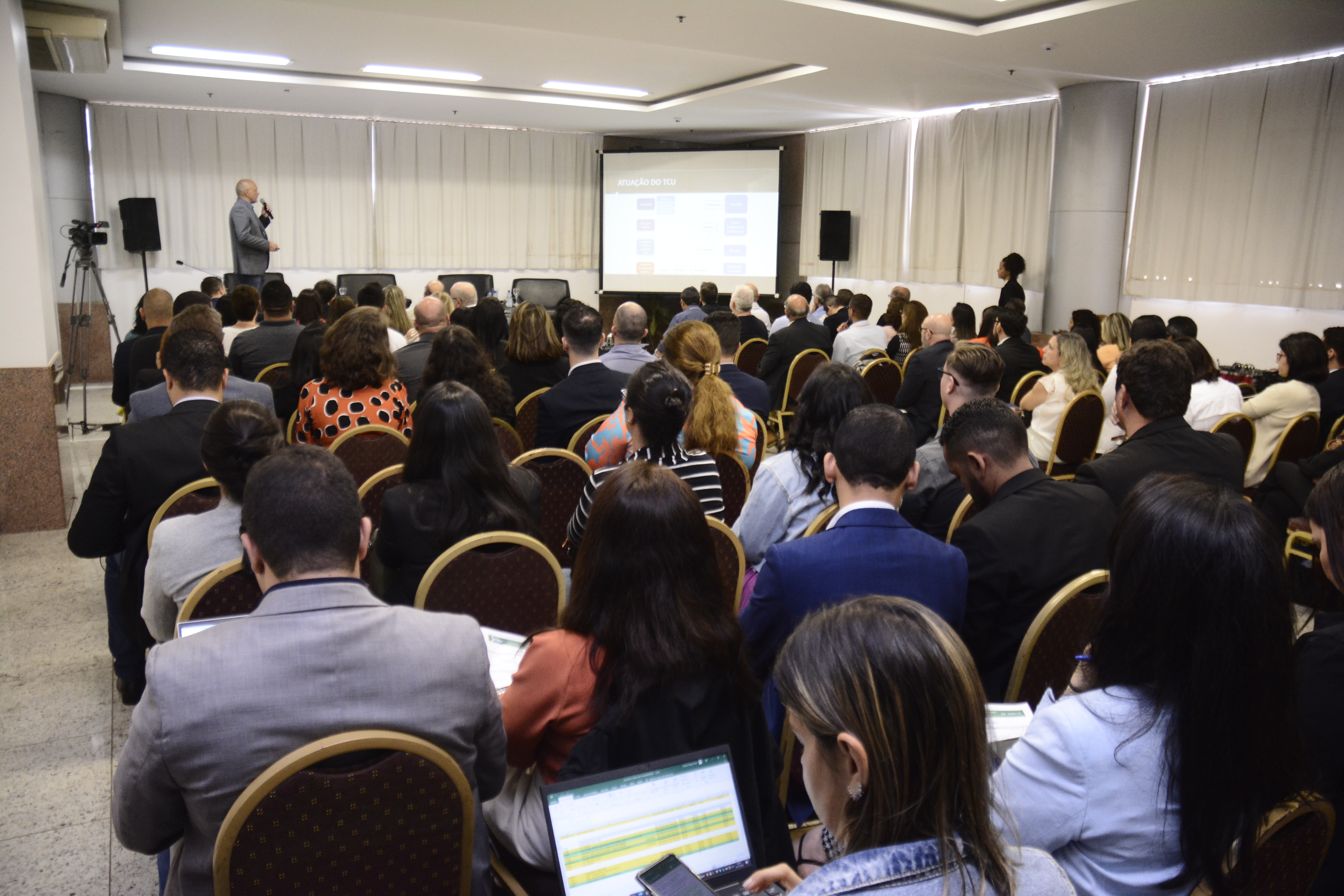 Funcionário do Tribunal de Contas da União (TCU), Walisson Alan de Almeida ministrou a palestra “Novo paradigma de governança e os resultados das avaliações da regularidade das despesas e outros aspectos da gestão dos conselhos de Fiscalização Profissional”, pontuando três acórdãos específicos do Tribunal (96/2016, 1925/2019 e 2402/2022). “Conselho profissional é suis generis, tem regramento específico, não podemos achar que tudo o que vale para autarquias públicas vai valer para conselhos profissionais”, colocou, após tratar da decisão sobre o regime de trabalho dos funcionários dos Conselhos: celetista. Walisson explicou como os processos de auditorias são encaminhados dentro do TCU – elucidou que alguns processos exigem oitiva junto ao Ministério Público – e, ainda, apresentou ferramentas de autoavaliação de gestão. “Estou à disposição para conversar sempre”, disse, antes que a mesa fosse aberta a perguntas e participação da plateia.