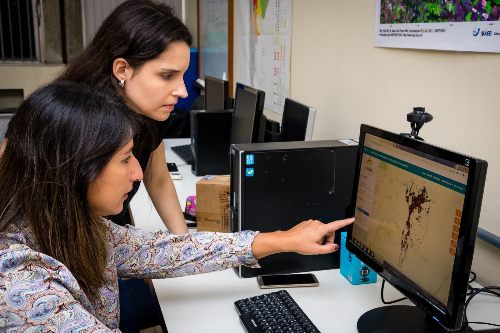 Na entrevista a seguir, a coordenadora do Lasa, doutora em Geofísica e professora do Departamento de Meteorologia da UFRJ, Renata Libonati (à esq.), ressalta como a integração entre tecnologia avançada e geociências é essencial para enfrentar os desafios atuais e futuros relacionados a incêndios florestais.