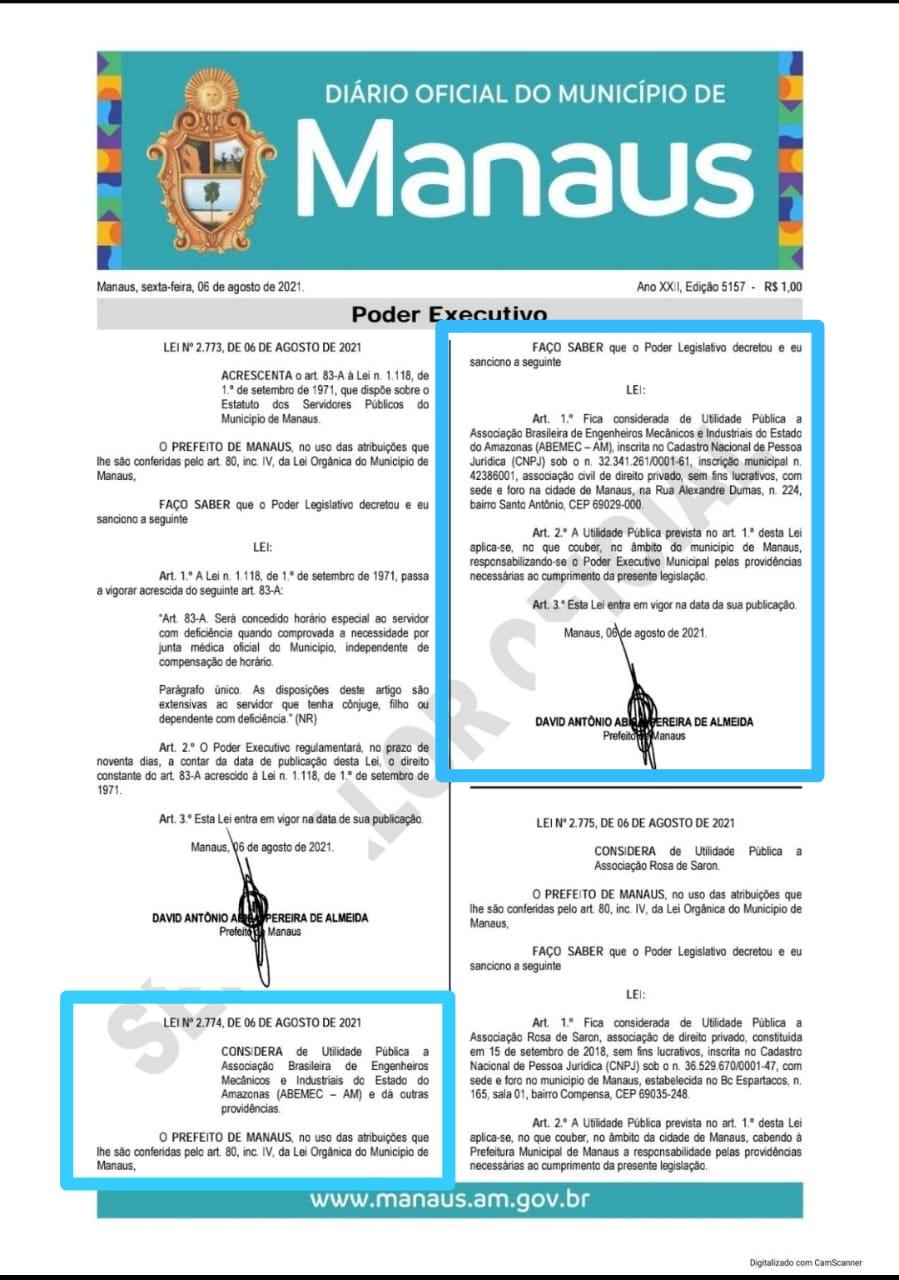 A Associação Brasileira de Engenharia Mecânica e Industrial do Amazonas (Abemec-AM), foi reconhecida no início deste mês de agosto, como entidade de classe de Utilidade Pública pela Prefeitura Municipal, conforme publicação feita no Diário Oficial do Município de Manaus, na edição do dia 6 de agosto.